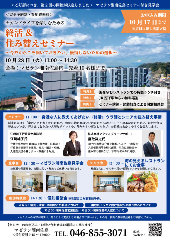 10月28日にマゼラン湘南佐島にて、これからの暮らしを考えるきっかけになる「セミナー付き見学会」を開催します!